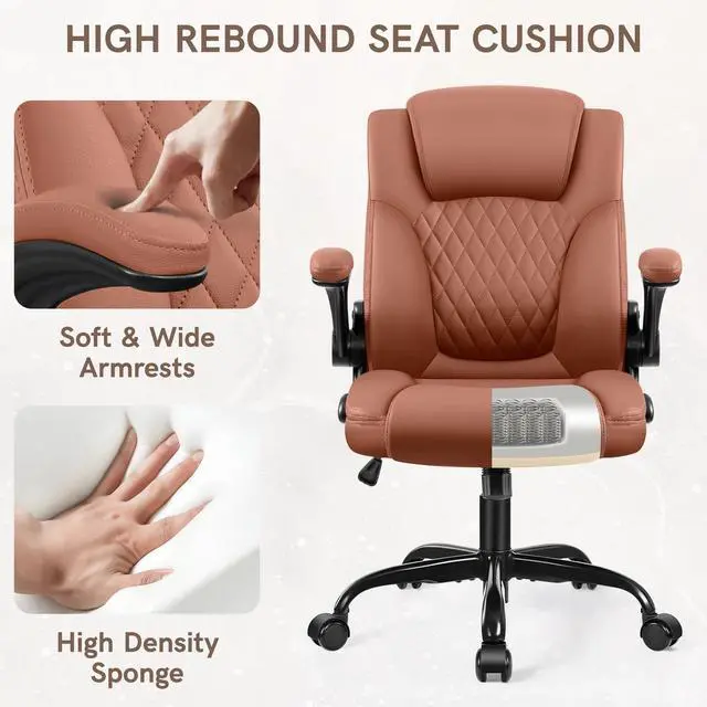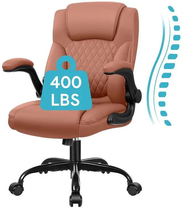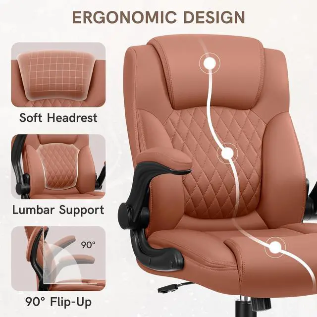COOLHUT Leather Office Chair, Big and Tall Office Chair 400LBS Wide Seat Ergonomic Computer Desk Chair High Back Executive Leather Chair Adjustable Task Chair Lumbar Back with 8-Year Warranty, Brown