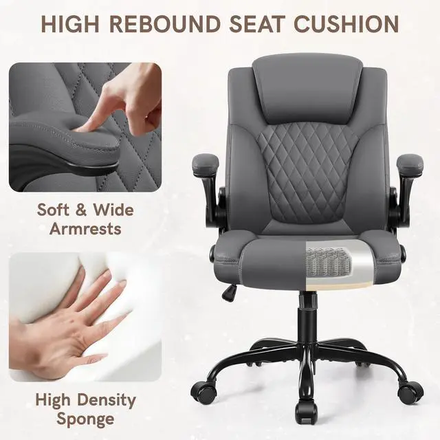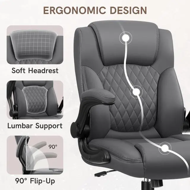 Flexible Design: Equipped with 90-degree flip-up armrests for space-saving and a 360-degree swivel for easy movement.
