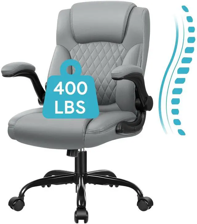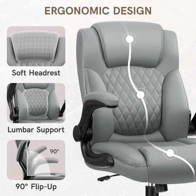 COOLHUT Leather Office Chair, Big and Tall Office Chair 400LBS Wide Seat Ergonomic Computer Desk Chair High Back Executive Leather Chair Adjustable Task Chair Lumbar Back with 8-Year Warranty, Gray
