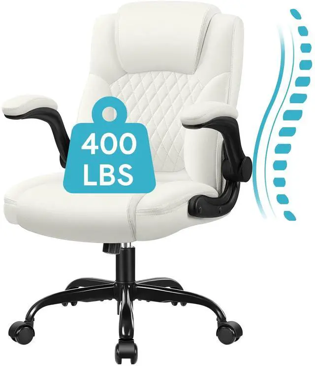 COOLHUT Leather Office Chair, Big and Tall Office Chair 400LBS Wide Seat Ergonomic Computer Desk Chair High Back Executive Leather Chair Adjustable Task Chair Lumbar Back with 8-Year Warranty, White