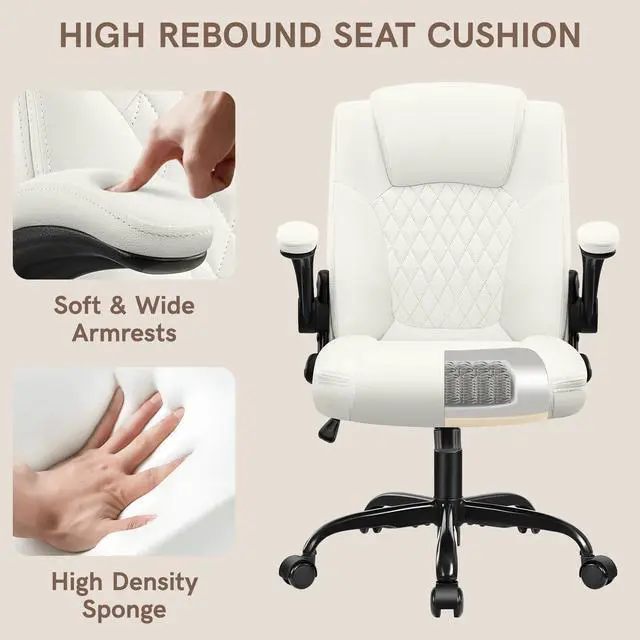 Premium Leather: This ergonomic office chair features premium waterproof and scratch-resistant PU leather, ensuring durability and easy maintenance for daily high-frequency use.
