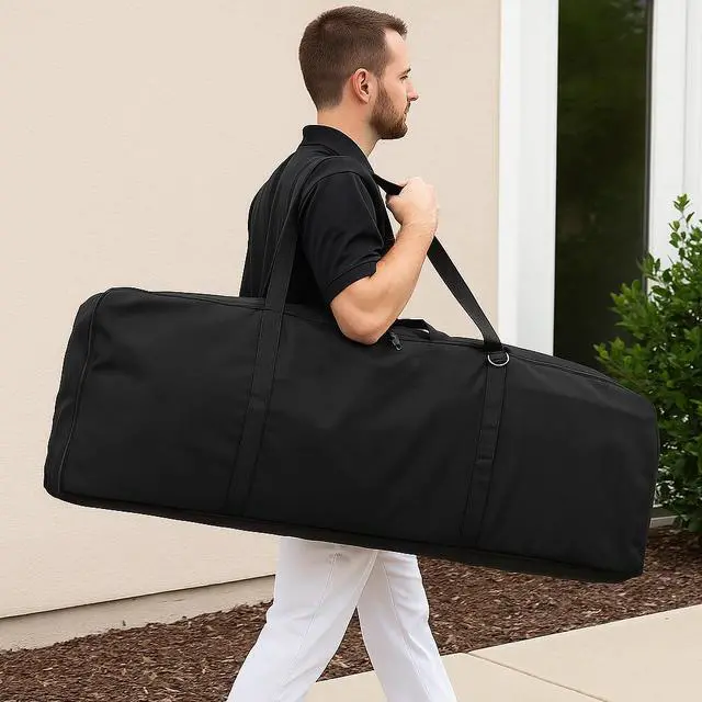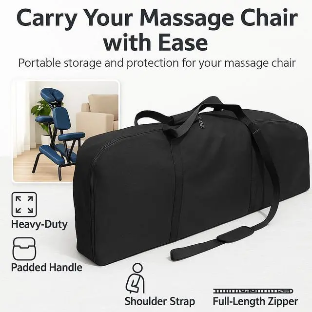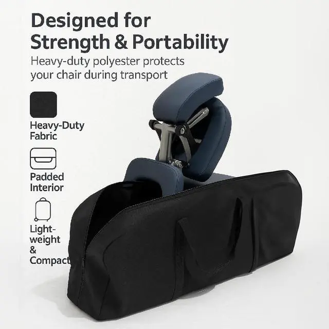 Our universal massage chair nylon case comes with sturdy ergonomic shoulder strap for easy carrying. It provides an easy and convenient way to store and transport your portable massage chair. This case is designed for portable folding style massage chairs. Each case comes with an unlimited 36 month guarantee against manufacturer's defects in materials and workmanship.