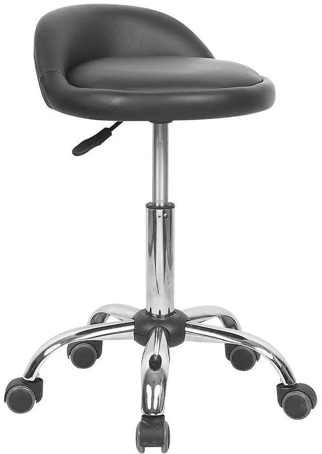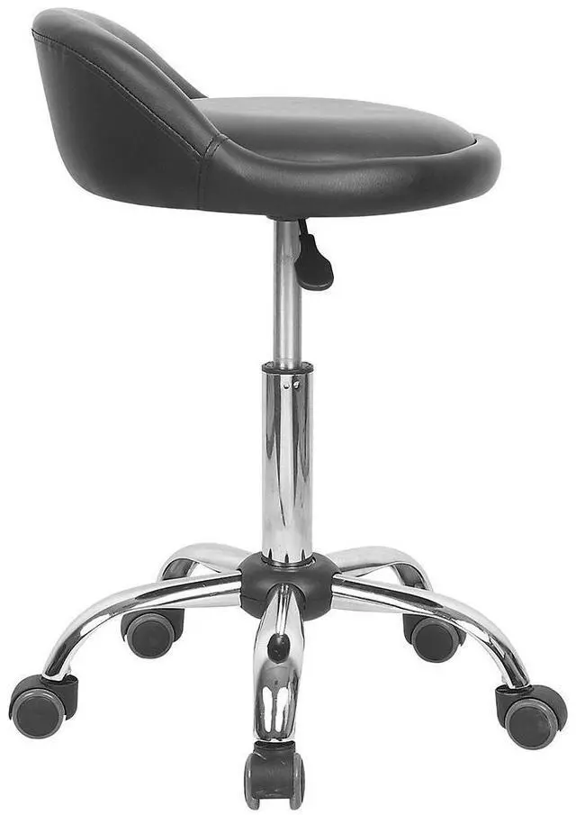 With a sleek contemporary design, the Juno offers practitioners the perfect versatile all around stool. Constructed of a soft, supple padded seat, the Juno offers up to 300lb users an easy option for adjusting height position. Each stool comes with a gas lift tested to 100,000 operations. The height can be adjusted up and down which is perfect for Reiki therapy, massage, tattoo, doctors, dentists and other practitioners. An adjustable height gas lift strut system with 360° swivel complete the stool giving bounce, rotation and flair! The whole stool stands on a sturdy chrome frame and has 5 high quality rolling casters enabling the user to roam freely on hard floors. The sleek design of the Juno fits any environment and any décor be it retro or contemporary. Includes a 5 year manufacturer warranty for gas lift performance. Measures 15" wide by 16" deep. Backrest rises 3.5" above the seat. Base measures 18" in diameter. Seat height adjusts from 18" to 24.5". Overall stool height adjusts from 22" to 28.25".