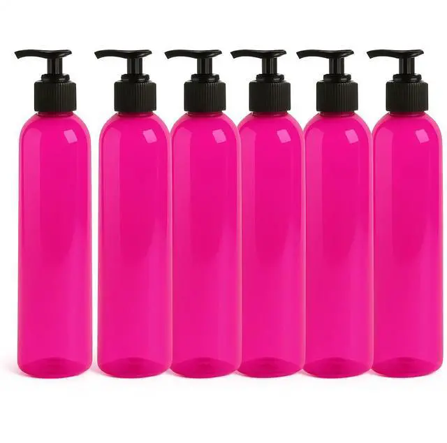 Royal Massage 8oz Bullet Round Massage Oil/Lotion/Liquid Bottle with Saddle Pump (Pink, 6)