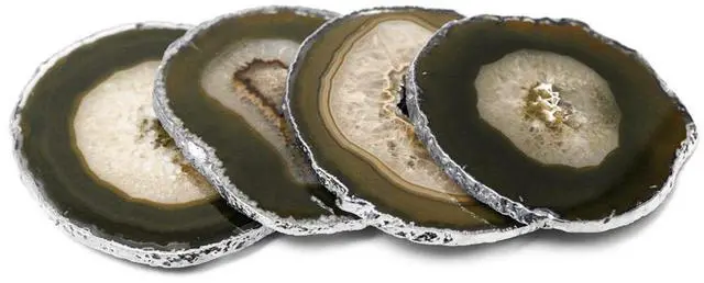 Modern Home Set of 4 Natural Agate Stone Coasters - Natural w/Silver Edge