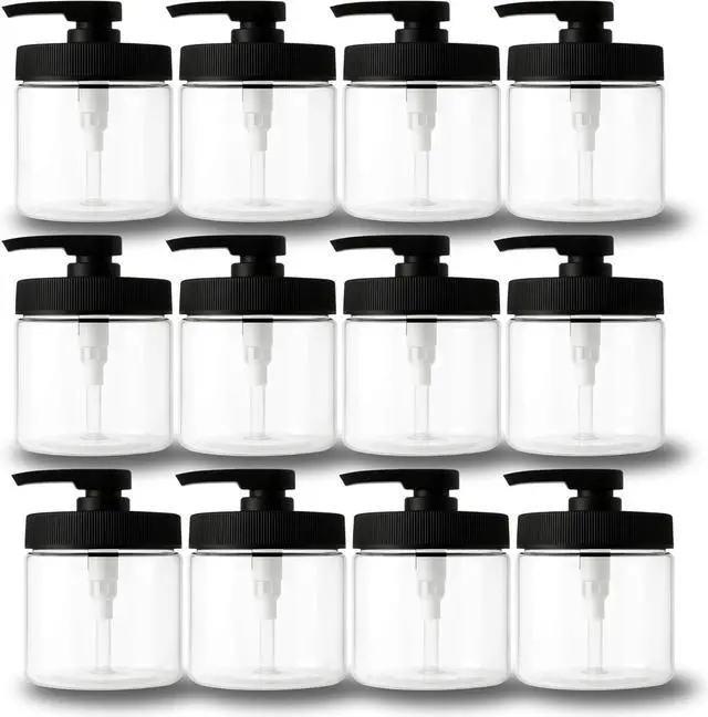 Royal Massage 16oz Massage Oil/Lotion/Cream Pump Jar with Locking Twist Top (Clear/Black, 12)