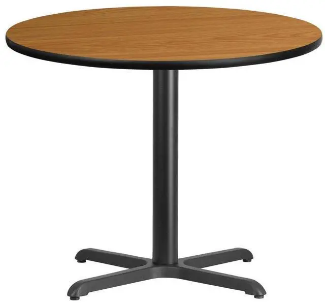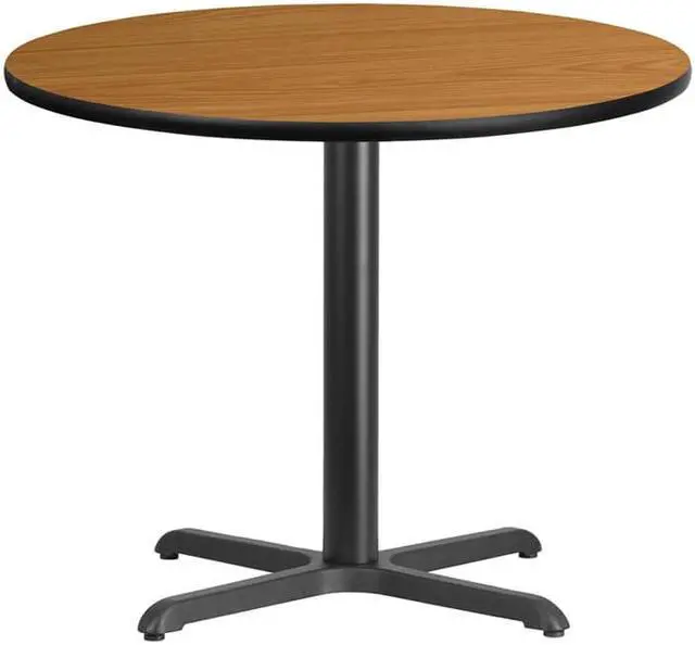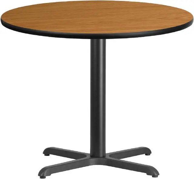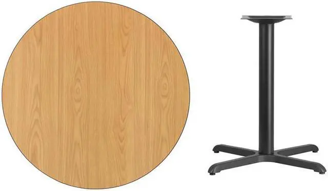 Complete the design of your restaurant, break room or cafeteria with this table top and base configuration. This set is designed for commercial use to withstand the daily rigors in the hospitality industry. This set will also make a great option for your home as a dining table or in the rec room. The reversible natural or walnut top allows you to make your color choice and then affix to the base. The surface is heat, scratch and moisture resistant with black T-mold protective edging. Easily clean up spills with a neutral detergent and water to keep your tables looking great.