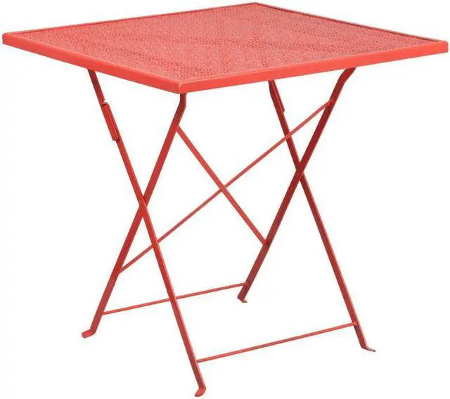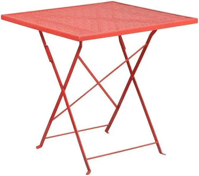 Commercial Grade 28" Square Coral Indoor-Outdoor Steel Folding Patio Table