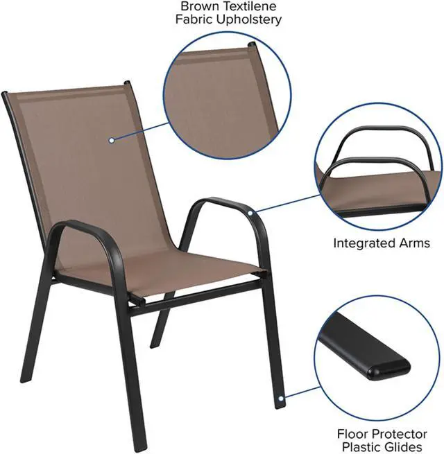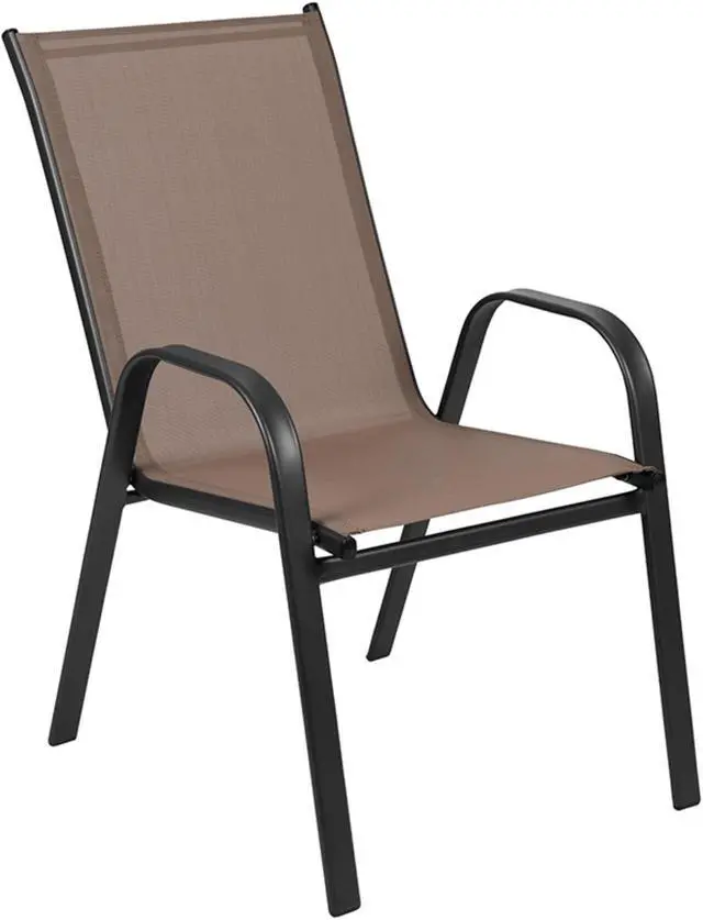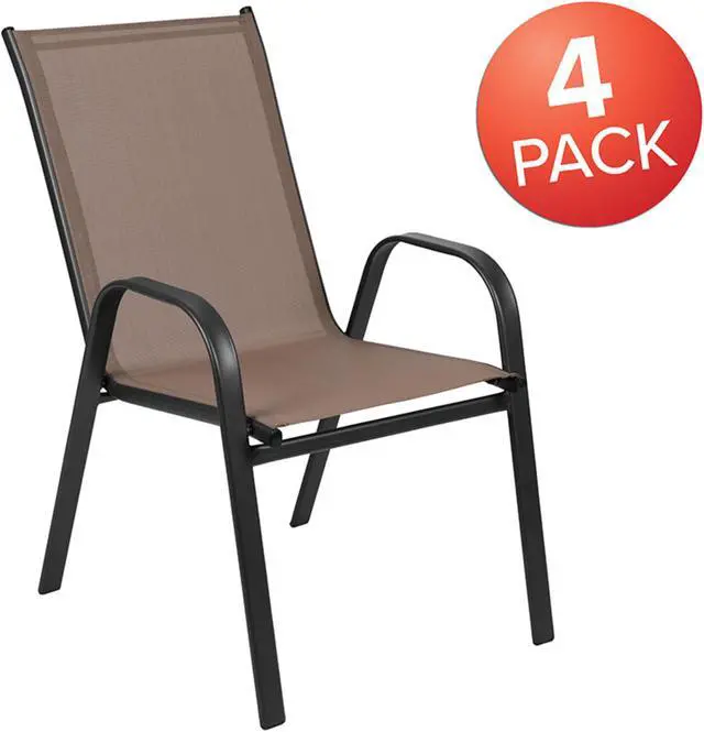 4 Pack Brazos Series Brown Outdoor Stack Chair with Flex Comfort Material and Metal Frame