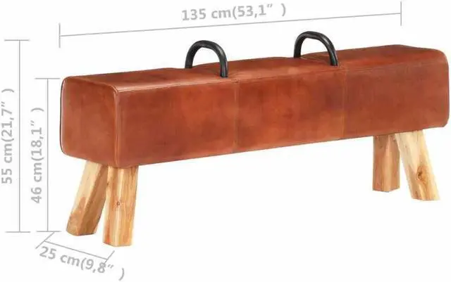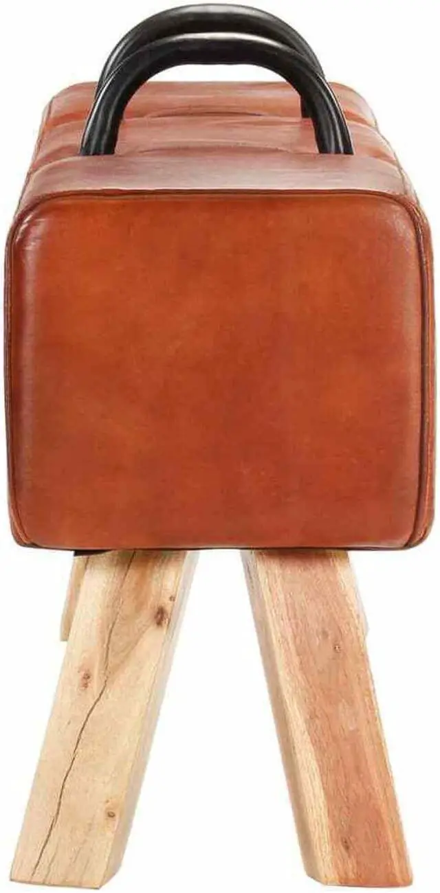 Our bench in old school gymnastics style is certainly a unique piece and mean to be an eye-catcher in your home or other spaces. The stylish metal handles form a great visual contrast to the real goat leather upholstery.