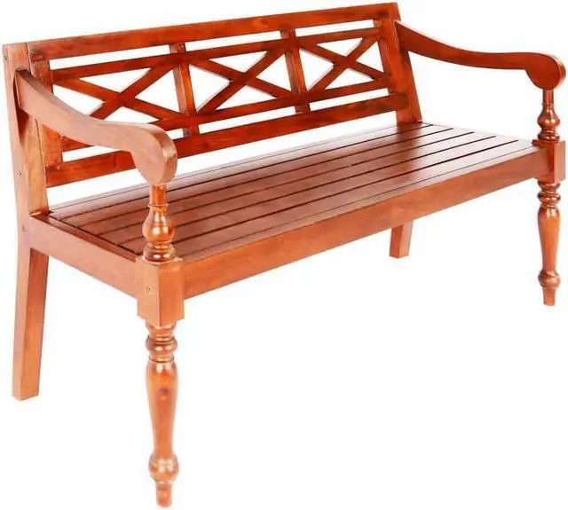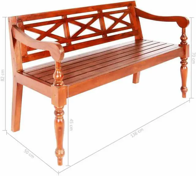The high-quality bench with elegantly-curved armrests is made of solid mahogany wood, which is very stable and durable. It is sturdy and easy to clean, thus ensures a long service life. This bench is easy to assemble.