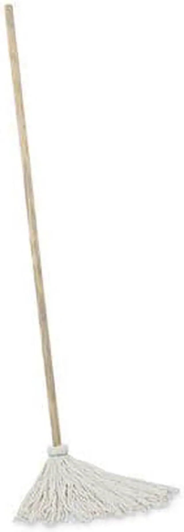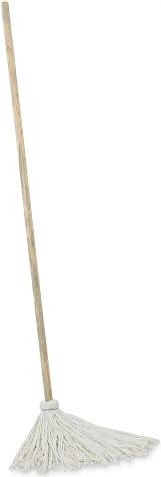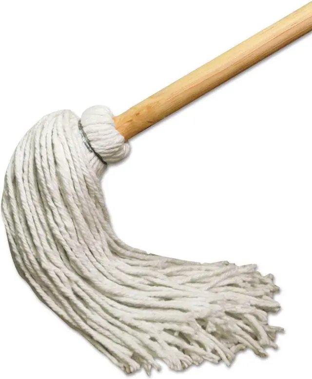 Traditional deck mop with permanent handle. White, economy, four-ply yarn. 12 oz.
