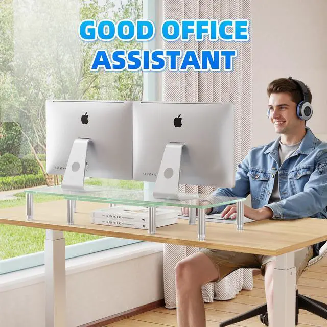 Premium Tempered Glass: The monitor stand is made of high quality tempered glass with a maximum load capacity of 260 lbs, providing stable support for your equipment and greater resistance to impact and heat, ensuring longevity and safety.