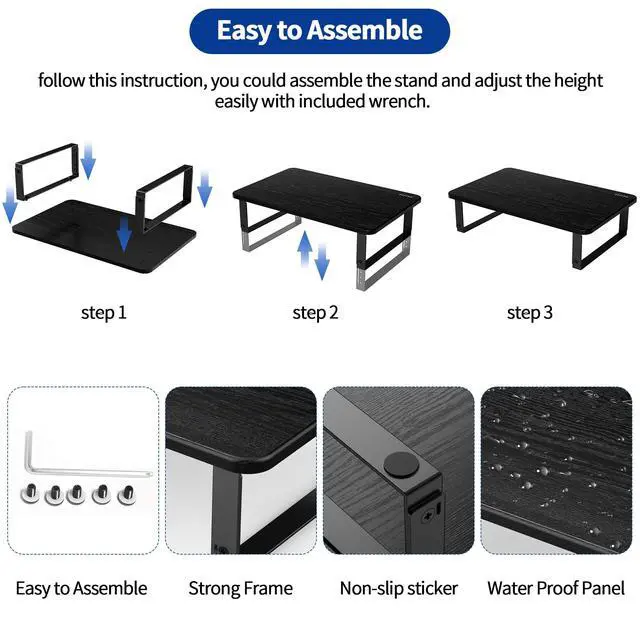 • Easy to Assemble: With screws included and pre-drilled holes, this monitor stand is a very easy to set up. Just follow the instruction on the packing box, you could complete the assembly in five minutes.