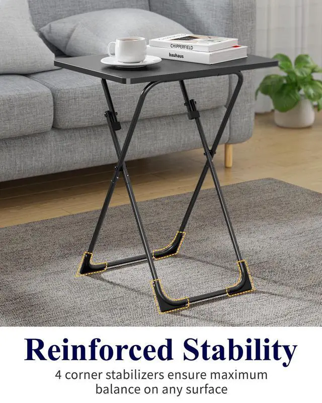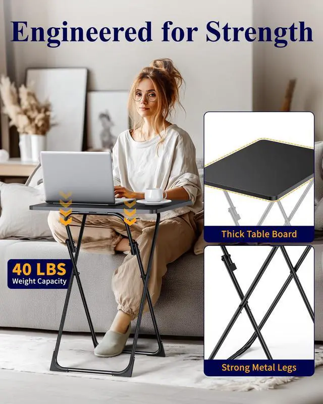 STABLE & NON-WOBBLE: This foldable TV table tray features a cross-legged frame to prevent accidental tipping. Its tabletop is securely attached with screws and hinges, ensuring stability and supporting up to 40lb without any wobble. The 4 corner foot pads resist sliding, keeping the table steady for working, reading, or dining.