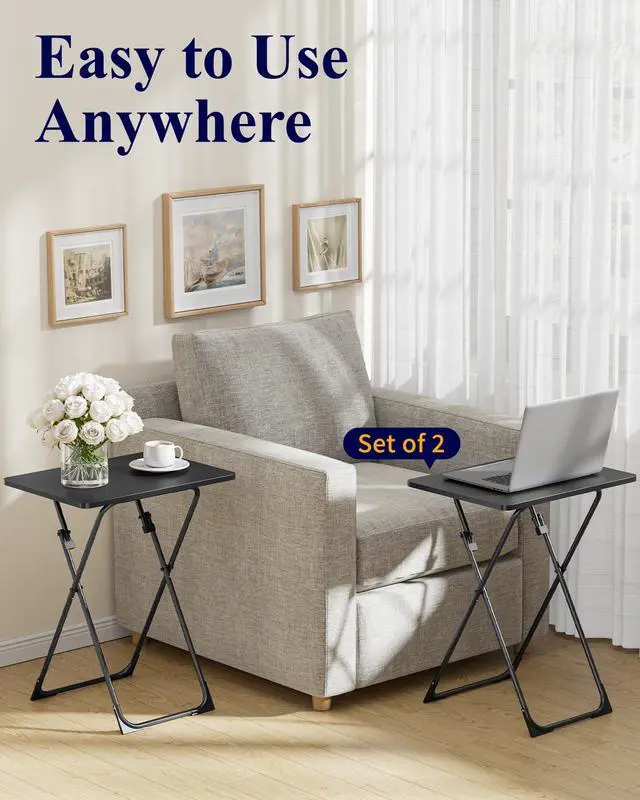 TV Tray - Foldable TV Trays Set of 2 with Corner Stabilizers, Waterproof & Scratch-Resistant TV Dinner Tray Table for Living Room, Bedroom, Office, Picnic, 16.9" × 13.0" × 24.2", Black