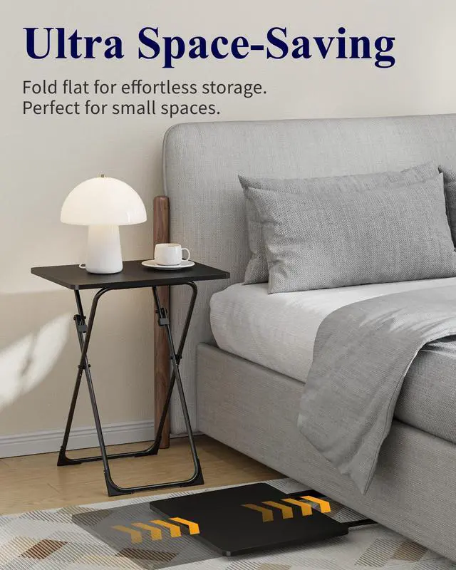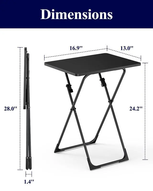 SPACE-SAVING DESIGN: Measuring a compact 16.9" x 13.0" x 24.2", this TV tray table offers ample surface space for a laptop, books, and drinks without occupying too much floor space. When folded down to just 28.0"×1.4", it easily slides under the bed, behind a door, or into a cabinet for space-saving storage after use.