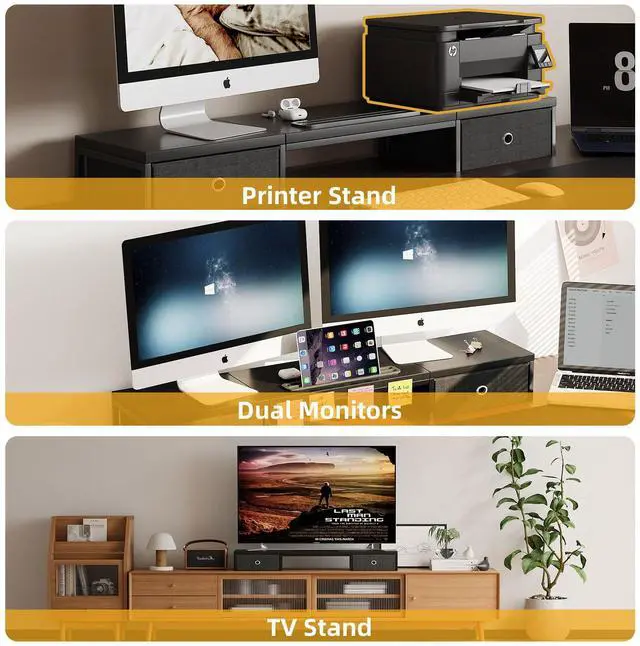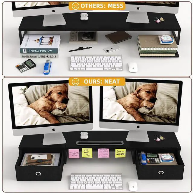 - Extra-long 39-inch platform can hold multiple computer monitors to work together.