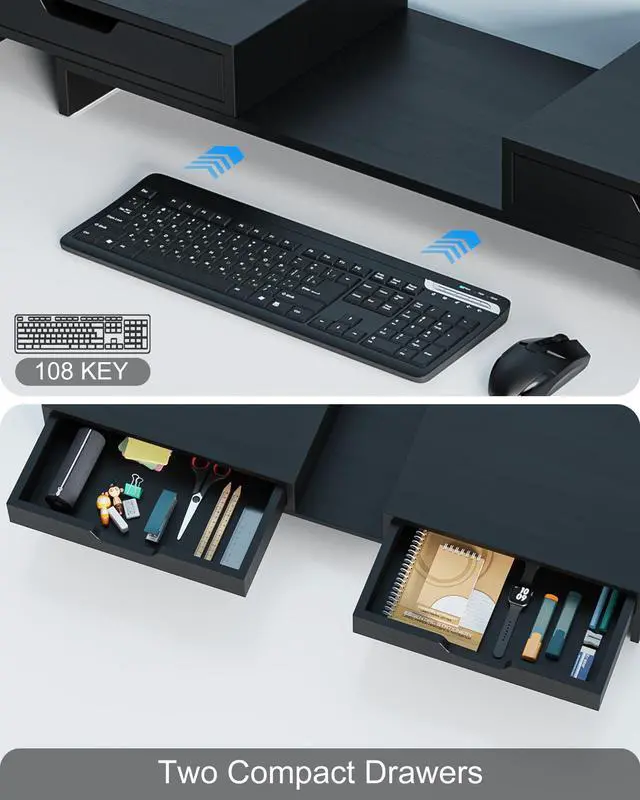 Dual drawers + open under-shelf tidy daily essentials, effortlessly creating a clutter-free workspace.