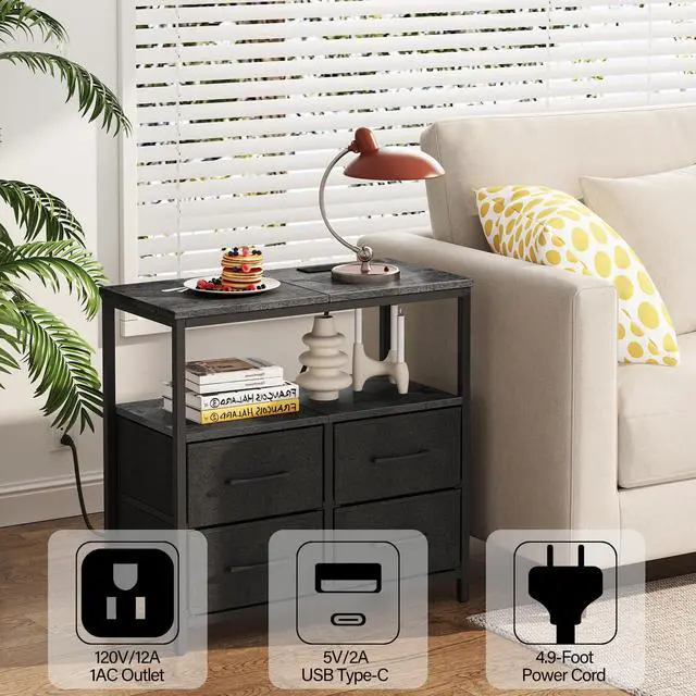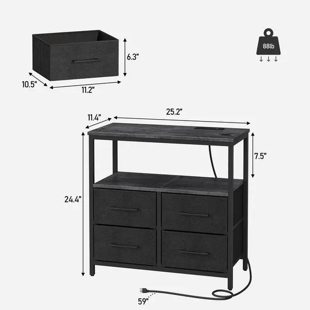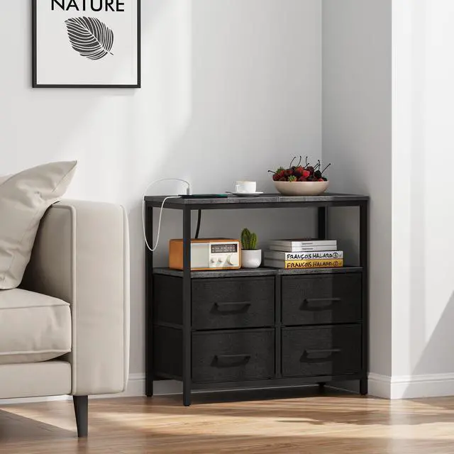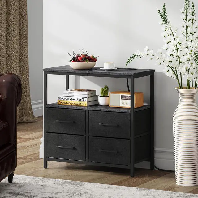 4 fabric drawers provide generous space to organize snacks, keys, glasses, and other everyday items. It is ideal for storing personal items.