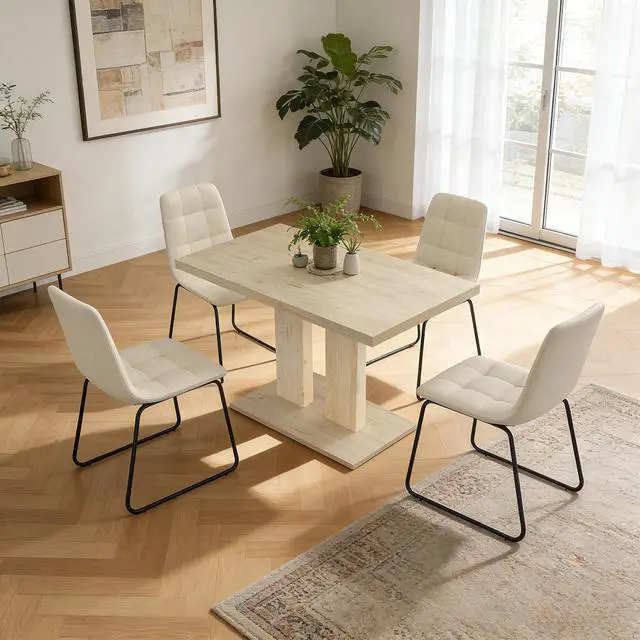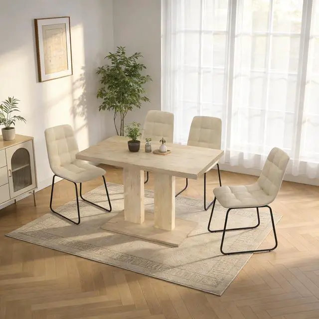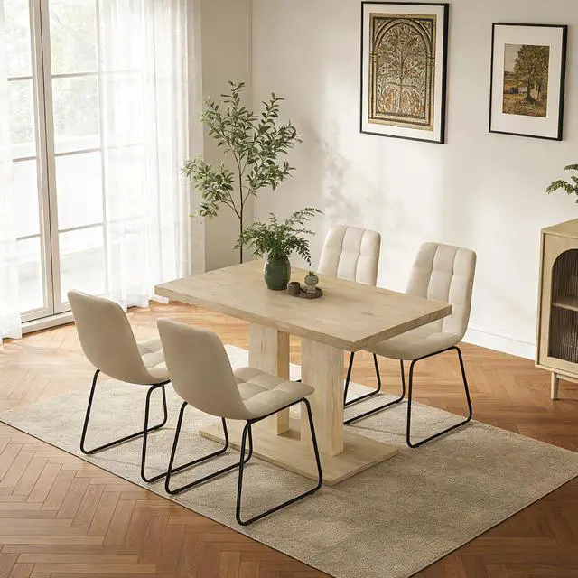 | Special Feature | Extra-Thick Square-Edge Tabletop, Natural Wood Grain Finish, Pedestal Base, Rectangular Dining Table, Smooth & Easy-Care Surface |