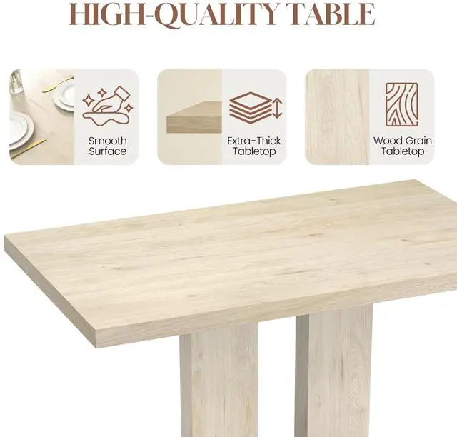 | Special Feature | Extra-Thick Square-Edge Tabletop, Natural Wood Grain Finish, Pedestal Base, Rectangular Dining Table, Smooth & Easy-Care Surface |