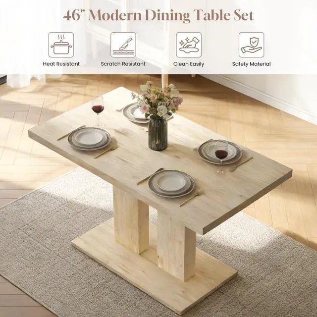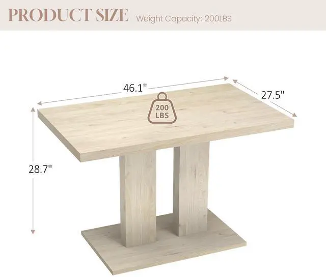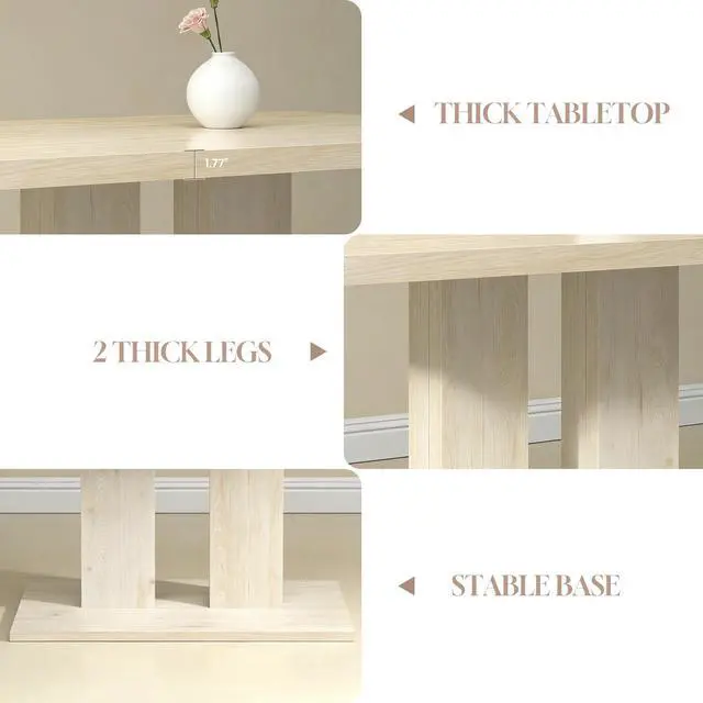 | Special Feature | Extra-Thick Square-Edge Tabletop, Natural Wood Grain Finish, Pedestal Base, Rectangle Dining Table, Smooth & Easy-Care Surface |