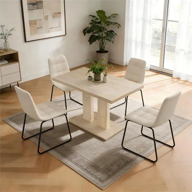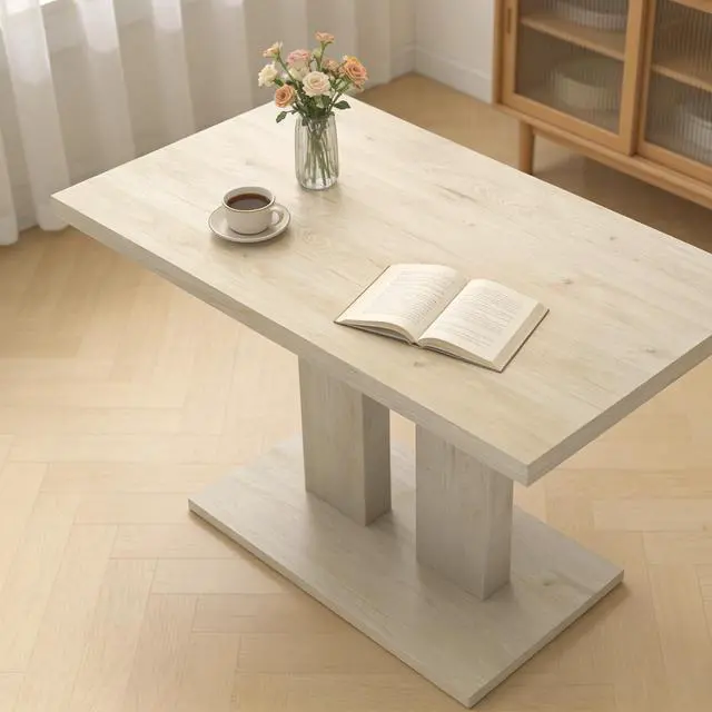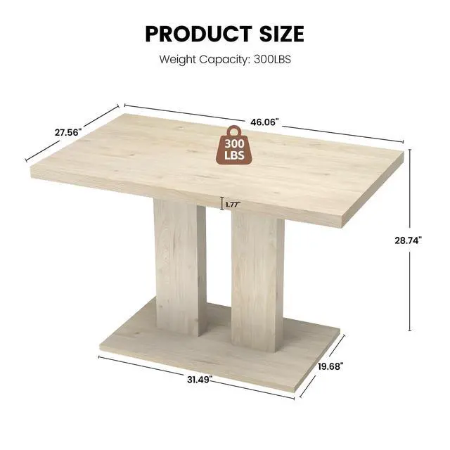 | Special Feature | Extra-Thick Square-Edge Tabletop, Natural Wood Grain Finish, Pedestal Base, Rectangle Dining Table, Smooth & Easy-Care Surface |