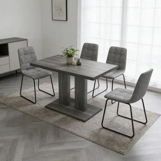 | Special Feature | Extra-Thick Square-Edge Tabletop, Grey Wood Grain Finish, Pedestal Base, Rectangular Dining Table, Smooth & Easy-Care Surface |