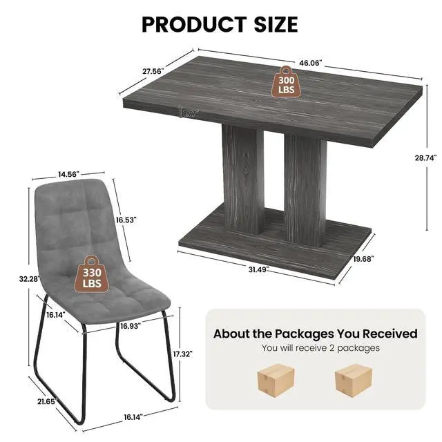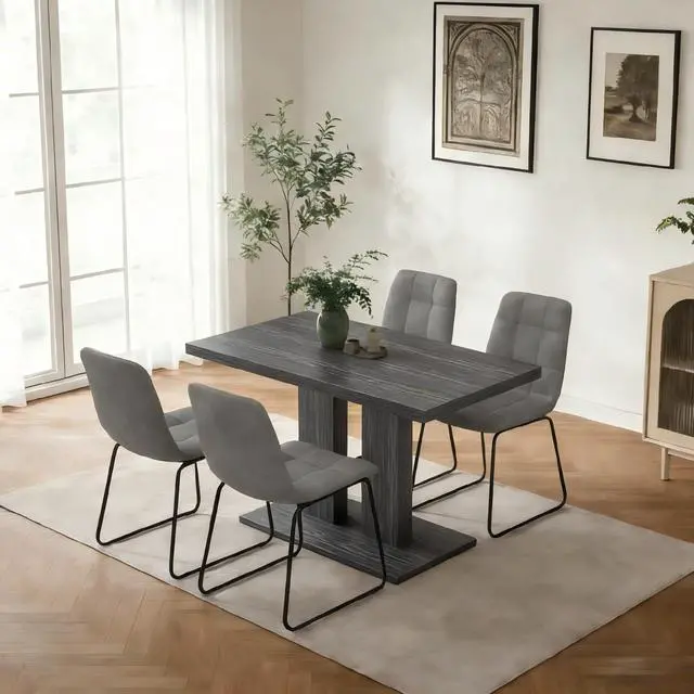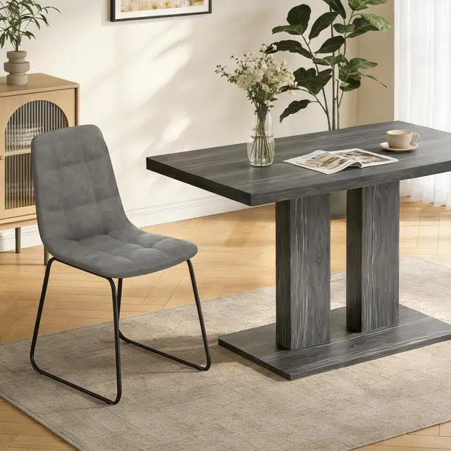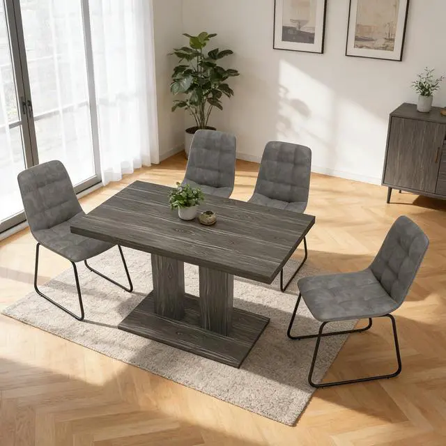 | Special Feature | Extra-Thick Square-Edge Tabletop, Grey Wood Grain Finish, Pedestal Base, Rectangular Dining Table, Smooth & Easy-Care Surface |