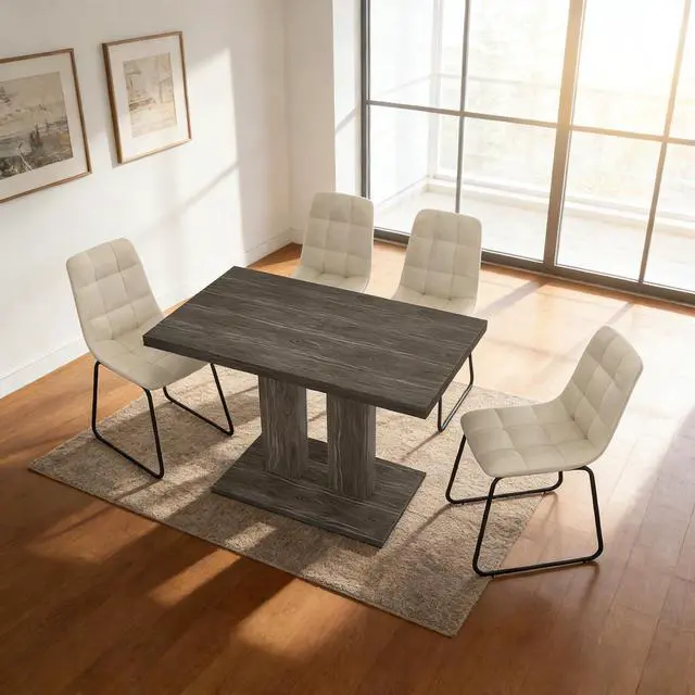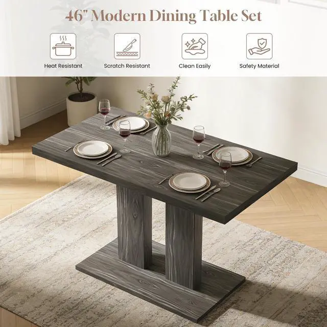 | Special Feature | Extra-Thick Square-Edge Tabletop, Grey Wood Grain Finish, Pedestal Base, Rectangular Dining Table, Smooth & Easy-Care Surface |