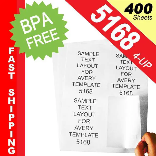 4 Labels (4-UP) per Sheet | 3.5" x 5" | Same Size as Avery 5168, 8168 | Blank White Shipping Labels | Will not Curl | Permanent Adhesive| BPA Free