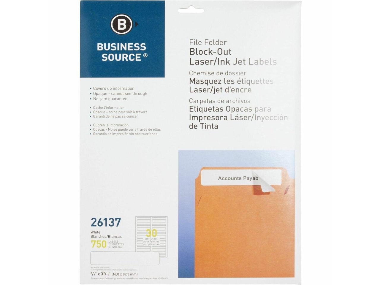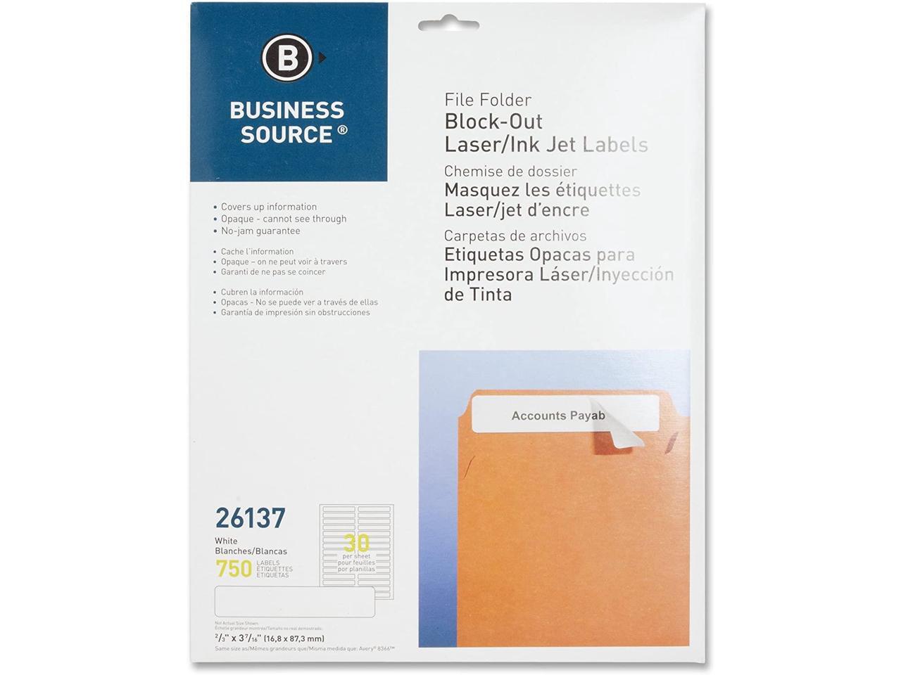 Business Source File Fldr Labels Block-Out Lsr/Inkjet 750/PK 2/3"x3-7/16 WE