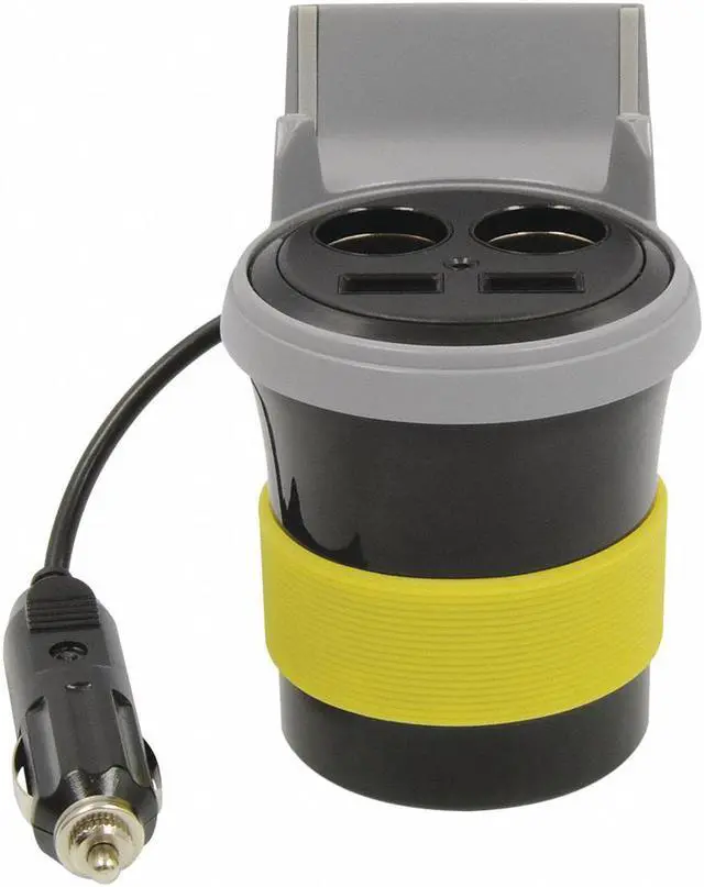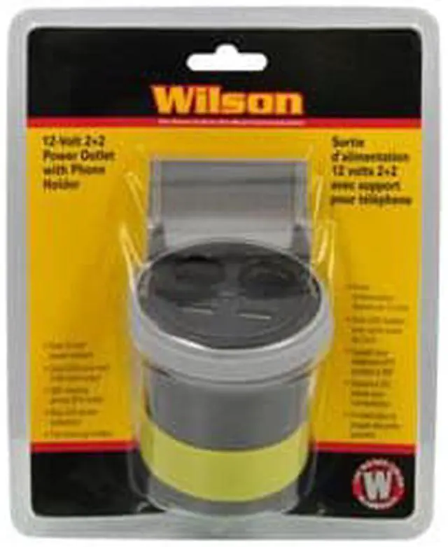 WILSON ANTENNAS 305POWERCUP 12V 2 2 POWER OUTLET WITH PHONE HOLDERThe Wilson 12-Volt 2+2 power outlet with phone holder powers two 12-Volt devices and two USB devices simultaneously. Features two 12-Volt power sockets 360 degree rotating phone and GPS holder with 12 volt power cord replaceable 10 Amp fuse and blue LED power indicator. This unit fits in most cup holders. Do not exceed 10 Amps maximum capacity for all devices. One 1A USB and one 2.4A USB port with 3.4 Amp total output. Powers two 12-Volt devices and two USB devices simultaneously360-degree rotating phone GPS holder12-Volt power cord with replaceable 10-Amp fuseFits most cup holders360 Degree Rotating Phone/ GPS Holder12-Volt Power Cord with Replaceable 10 Amp FuseBlue LED Power IndicatorFits Most Cup Holders