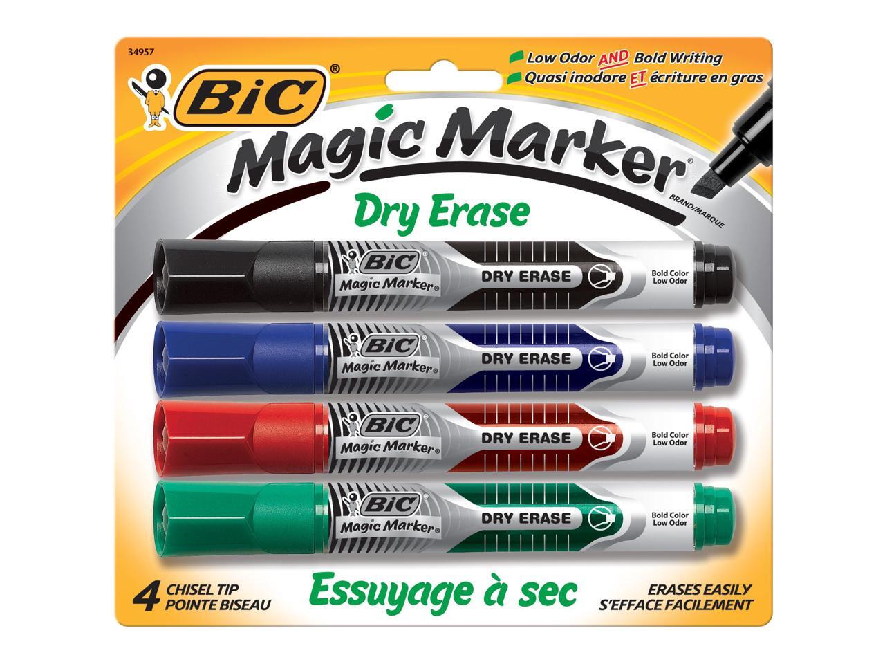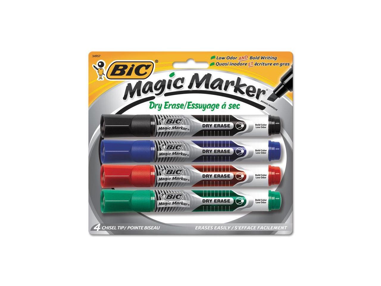 BIC Low Odor & Bold Writing Dry Erase Marker Chisel Tip 4/Pack GELITP41AST