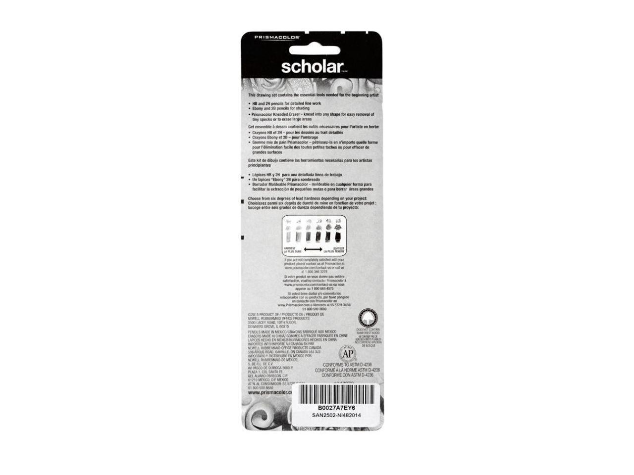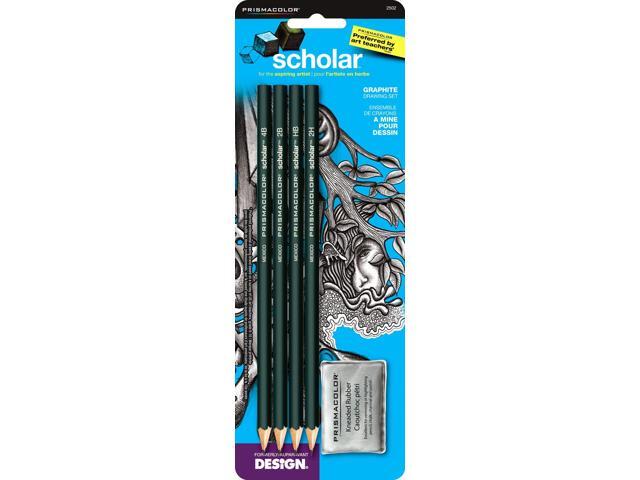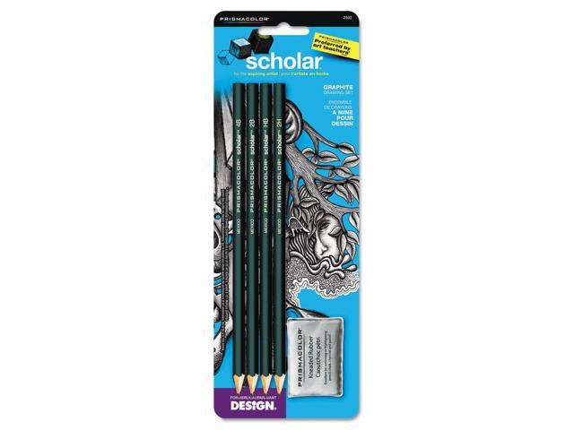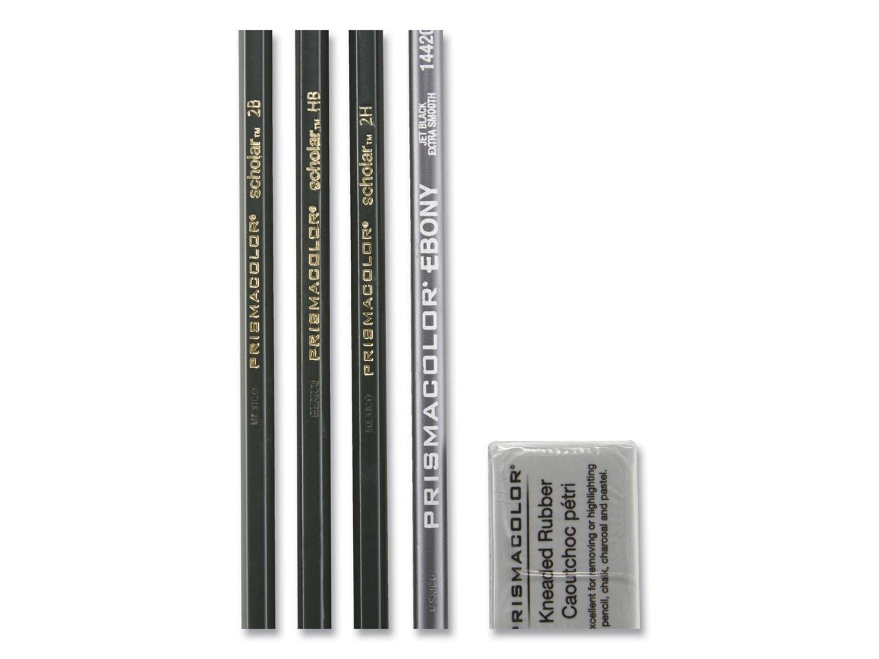 Prismacolor Scholar Graphite Pencil Set, 4B, 2B, HB, 2H Pencils, Kneaded Eraser