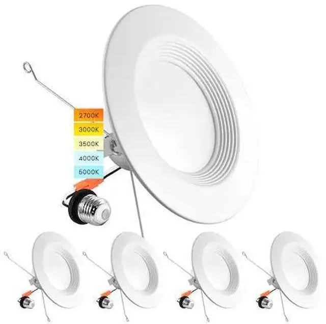 Luxrite Recessed Lighting with 5 Color Temperature Switch The perfect solution to those that want the ability to pick the correct light for your home or business With these Luxrite LED recessed ceiling lights, you are offered 5 color temperature options to choose from with an easy to use switch attached to each down light Choose from 2700K warm white, 3000K soft white, 3500K natural white, 4000K cool white, or 5000K bright white with just a simple adjustment Built with a lightweight design, each LED can light is easy to handle and install into your 5 or 6 inch can housings Just using the E26 adapter to screw in your lights and push the fixture into the housing with the metal tabs for a flush to ceiling finish You'll be able to use these downlights indoors and outdoors since each fixture is wet location rated to handle rain and damp areas, so feel free to install in soffits, eaves, or even showers Control the light output with it's smooth dimming capabilities which can go from 100 to 10 light, giving you a comfortable space every time