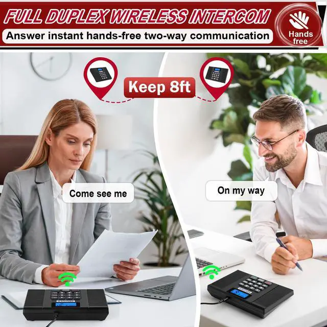 Tired of shouting across spaces? Our wireless intercom delivers full-duplex clarity in challenging environments. Operate Hands-Free with Auto-Answer, Silent Mode, Replay, and Two Independent GROUP Channels for 18 units each. This complete intercom system ensures seamless connectivity across warehouses, restaurants, offices, and multi-level homes. Perfect for home intercom applications and commercial use. Choose our reliable 60D intercom that keeps teams connected wherever communication matters.