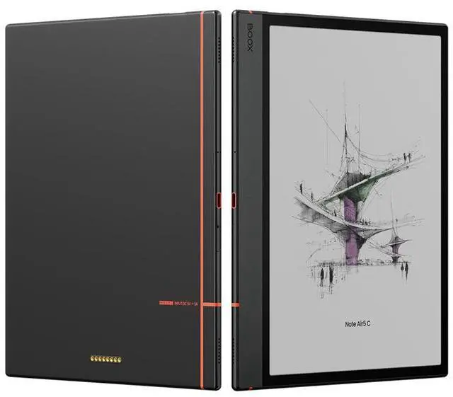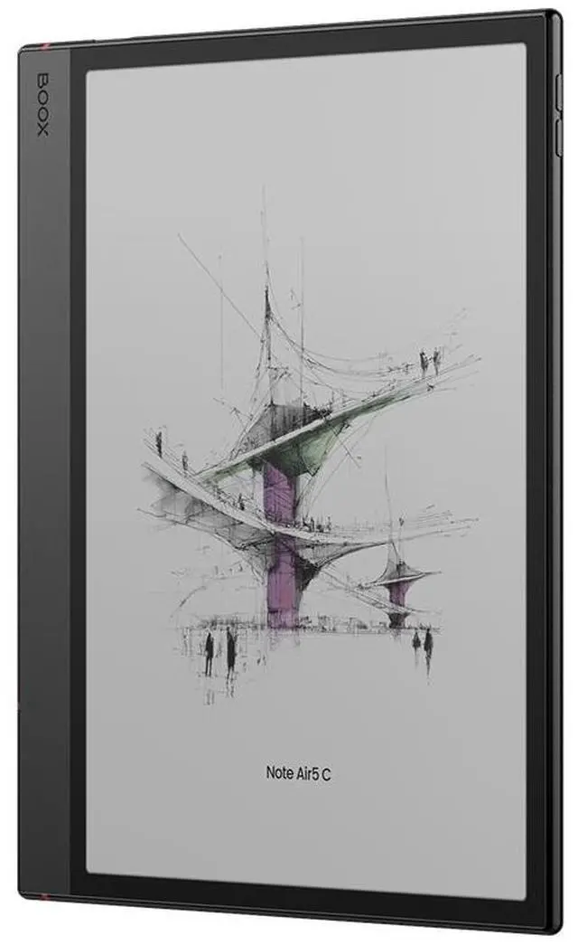 The BOOX Note Air5 C features a 10.3" Kaleido 3 color E Ink display with adjustable warm/cold front light, delivering a paper-like reading and writing experience in both color and black-and-white. Powered by a Qualcomm octa-core processor with BSR GPU, 6GB RAM, and 64GB UFS storage, it runs Android 15 for fast, modern performance and broad app compatibility.