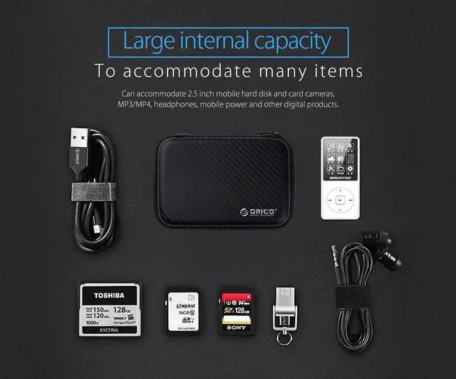 • Storage 2.5 inch HDD, earphones, data cable, charger and other digital accessories