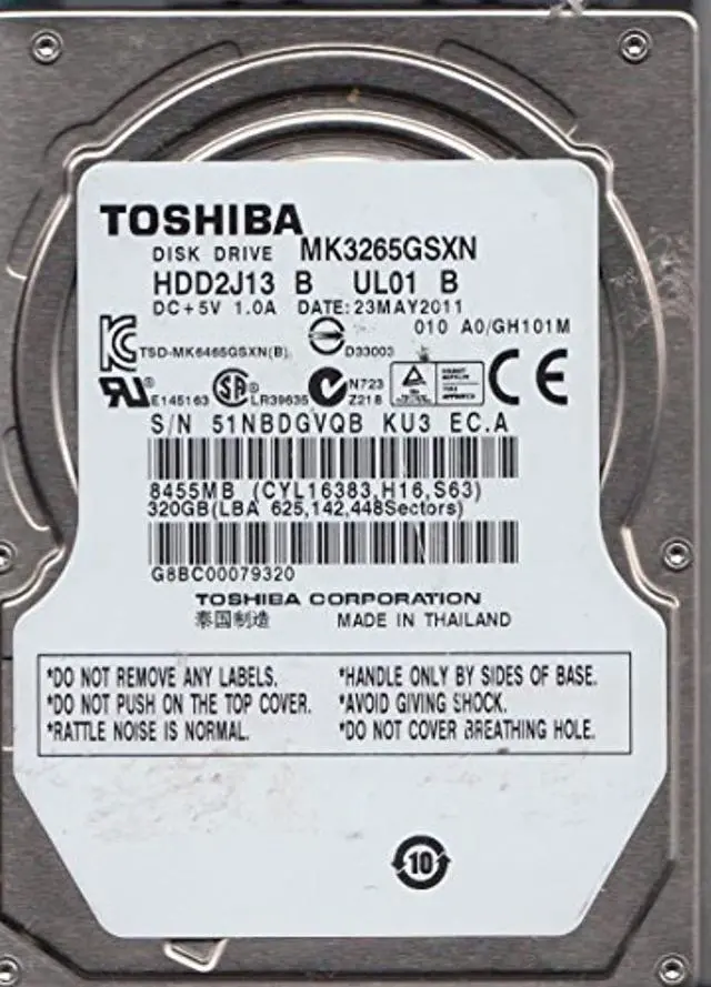 SPECIFICATIONS (see pic for all details) MK3265GSXN, A0/GH101M, HDD2J13 B UL01 B, Toshiba 320GB SATA 2.5