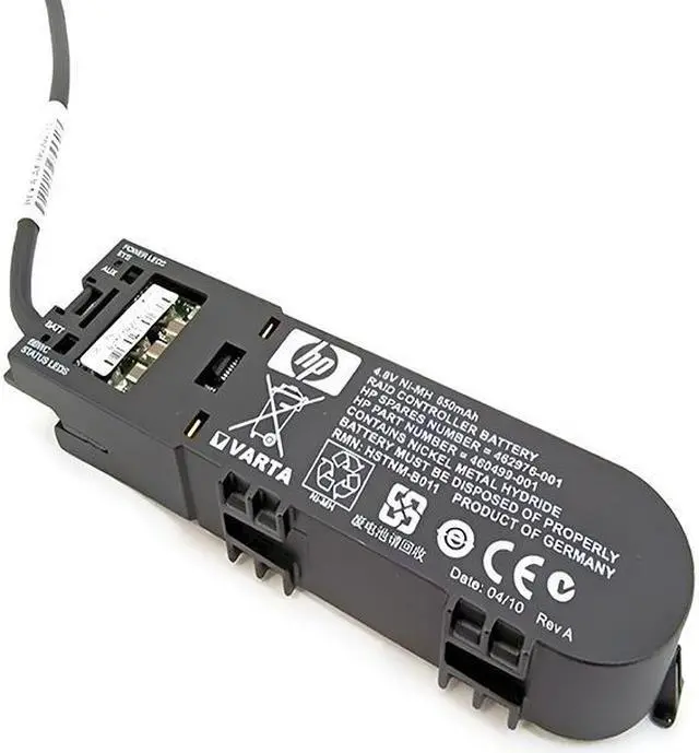 • General InformationManufacturer: HP Inc.Manufacturer Part Number: 460499-001Manufacturer Website Address: http://www.hp.comBrand Name: HPProduct Name: Smart Array BBWC Battery PackProduct Type: BatteryBattery InformationApplication/Usage: RAID ControllerBattery Rechargeable: YesBattery Size: Proprietary Battery SizeBattery Capacity: 650 mAhMiscellaneousCompatibility: HP Smart Array Controllers:P410P212