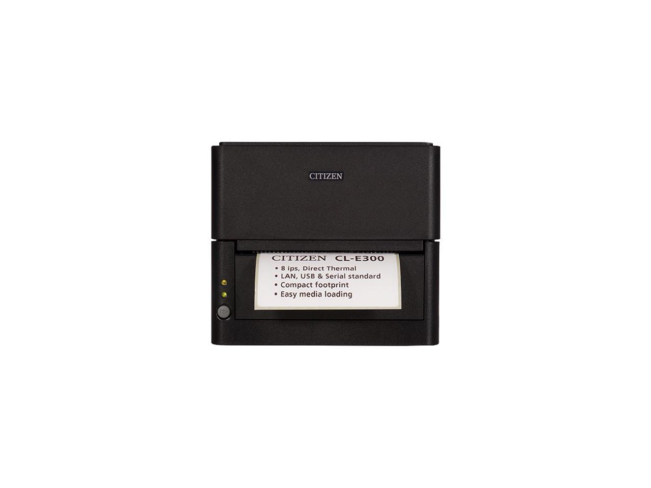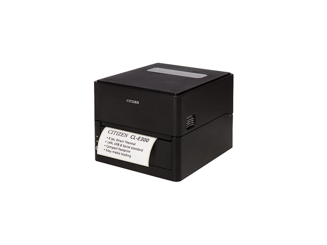 Citizen CL-E300XUBNNA CL-E300 Series Compact LAN-as-standard Direct Thermal Barcode and Label Printer – USB/LAN/Serial – Black