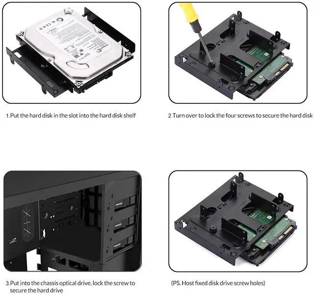 Supports computer cases with an available 5.25 inch drive bay (screw-on type); allow to Mount 1x 3.5 - inch Drive and 4 x 2.5 - inch Drive