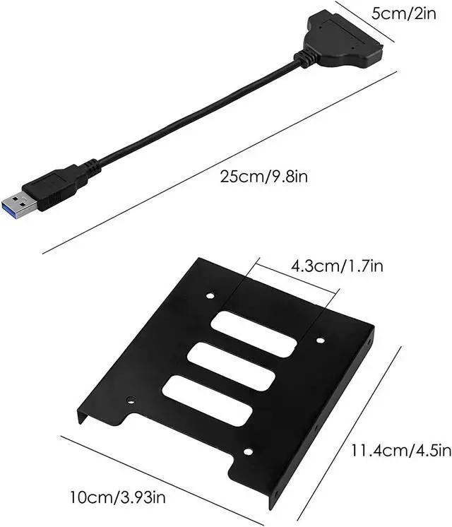 2.5 To 3.5? DRIVE BAY- 2.5 To 3.5 Mounting Adapter Bracket Support 2.5 hard drives (SSD and HDD) of laptop compatible with SATA I SATA II SATA III. FUNCTIONAL- Maximize the internal space of your computer case for efficient usage. The package includes 1 x Hard Drive Holder; 1 x Hard Drive Adapter Cable.