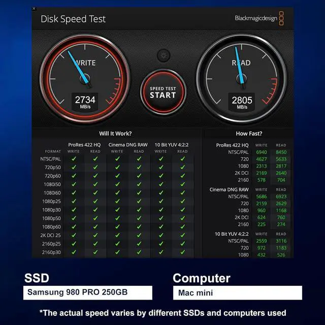 • Our 40Gbps nvme enclosure is fully compatible with USB4.0 and downward compatible with USB3.2/3.1/3.0/2.0. The enclosure speed test for the Samsung 980 PRO 250GB is 2805mb/s for read and 2734mb/s for write.