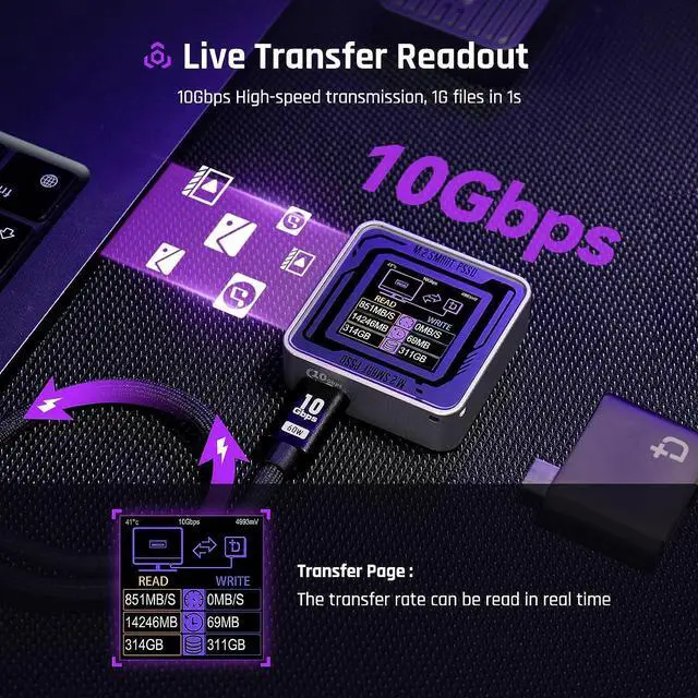 DOCKCASE - The first smart SSD enclosure with an HD display screen, can complete the intelligent detection of SSD when the Smart SSD Enclosure is powered on.