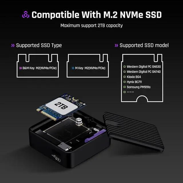 Compatibility: DOCKCASE Pocket M. 2 to USB Enclosure fits NVMe PCIe, exclusive to size 2230, support M-Key and B&M Key UASP (up to 2TB SSD)
