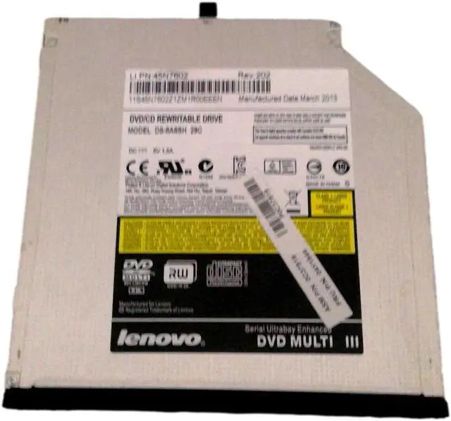 The Lenovo ThinkPad DVD-RW Drive (model 04Y1544, DS-8A8SH 29C/45N7602) is a reliable optical drive designed for seamless data reading and writing. This versatile device supports various disc formats, enabling users to easily create backups, install software, and enjoy multimedia content. Its compact design ensures compatibility with Lenovo ThinkPad laptops, enhancing productivity and providing a convenient solution for users requiring optical media functionality.