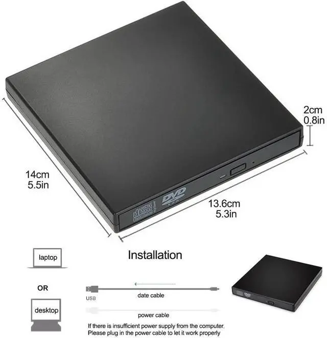 This slim USB2.0 CD-RW writer/drive fits with any laptop and desk computers with USB port. With a power cord, there is no worry about power shortage when connect it to the desktops.